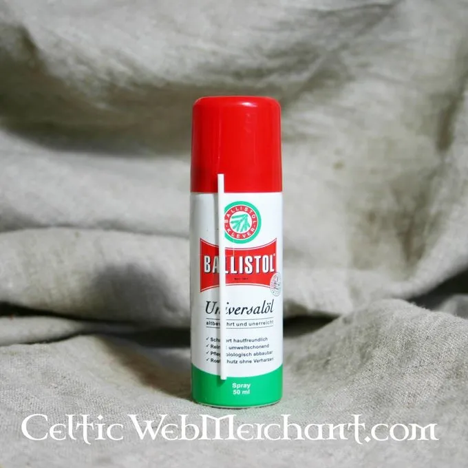 Uniek, veelzijdig en milieuvriendelijk. Ballistol spray verhelpt roest, beschermt ertegen en smeert metaal. Het dringt door tot de kleinste hoeken, verhardt niet en is biologisch afbreekbaar. Het is niet giftig, wel huidvriendelijk. Kortom, Ballistol is voor alles te gebruiken, van het verzorgen van zwaarden tot het gebruik in industrie. Een flesje is 50 ml.