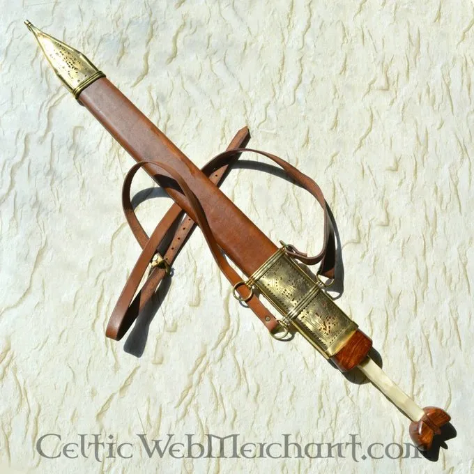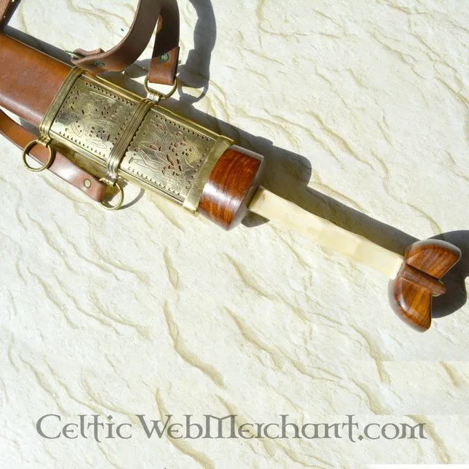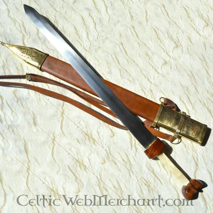 Deze spatha is gebaseerd op originelen die tussen de 2de en 5de eeuw n.Chr door Germaanse auxiliae in dienst van het Romeinse leger werden gebruikt. In tegenstelling tot de gladius was de spatha langer, en werd hij als houwwapen gebruikt. Deze spatha heeft een grip gemaakt van hout en been. Hij wordt inclusief schede geleverd.