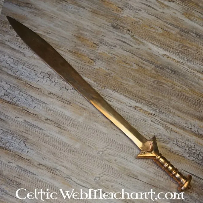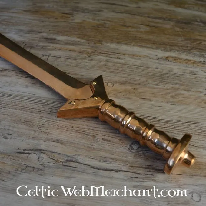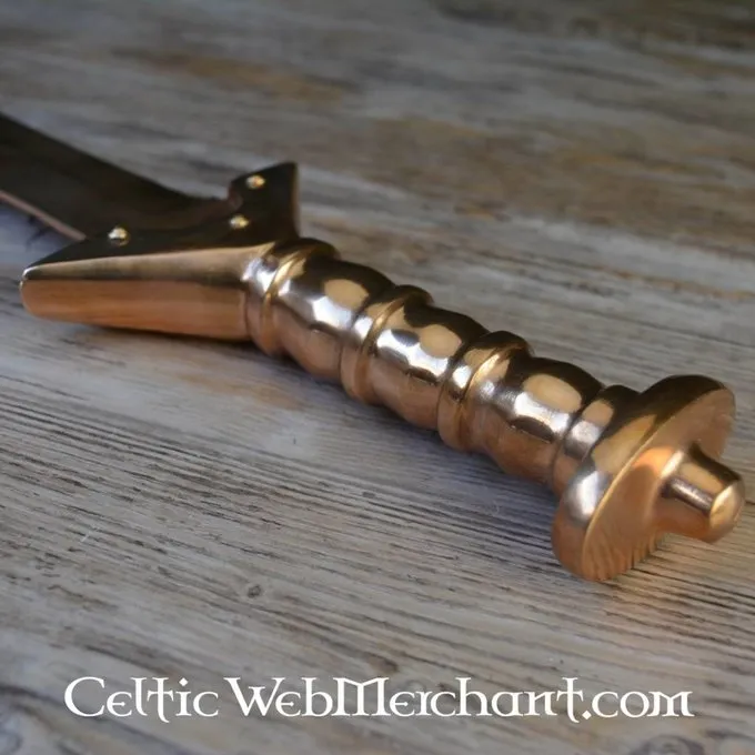 Productdetails: Lengte: 82 cm / Klinglengte: 66 cm / Griplengte: 16 cm / Gewicht: 1480 gram / Staaltype: Brons / Snede: Semi-scherp / Tangconstructie: Volledige tangconstructie inclusief pommel / Gripwikkeling: Brons / Gebaseerd op historisch origineel: J