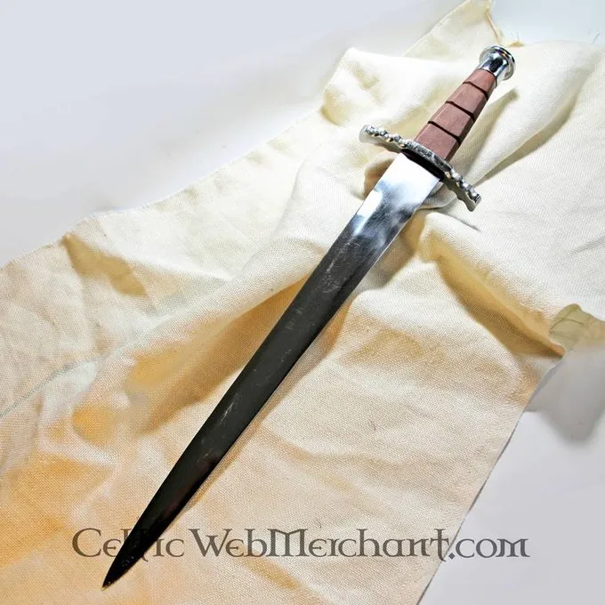 Deze zwaarden werden vaak in combinatie met speerformaties ?schiltroms? gebruikt. Wanneer de speer brak, kon een soldaat uit de schiltrom het korte zwaard trekken en vijandelijke zware cavalerie die op de grond lag aanvallen. Het korte Schotse zwaard is 55,50 cm lang en heeft een kling van 40 cm. Hij wordt inclusief schede geleverd.