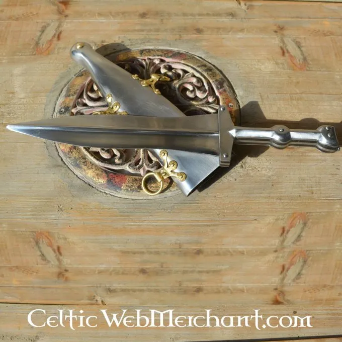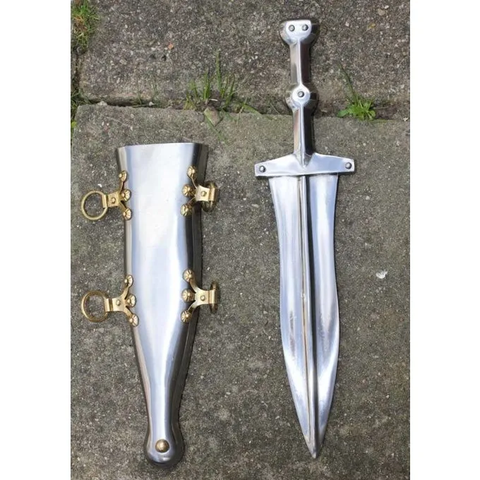 Deze dolk is gemaakt naar een exemplaar uit de 1ste eeuw n.Chr teruggevonden in Pompeii. Pugiones zoals deze werden in het gehele Romeinse rijk gebruikt, maar maakten geen deel uit van de standaard wapenrusting van een legionair. Waarschijnlijk kocht de legionair de pugio zelf.