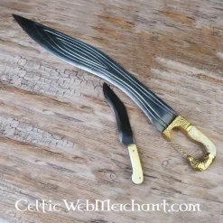 De kling van dit zwaard kan voor een meerprijs bot (2,5-3 mm) worden gemaakt. Let op: hoewel de kling hierdoor een battle-ready dikte krijgt, vervalt met het gebruik van de afbotservice de garantie en het retourrecht. Wenst u gebruik te maken van deze service, neem dan contact met ons op of geef dit aan in de laatste stap bij afrekenen van uw winkelwagentje. Houd u rekening met een levertijd van ongeveer 2 weken extra.