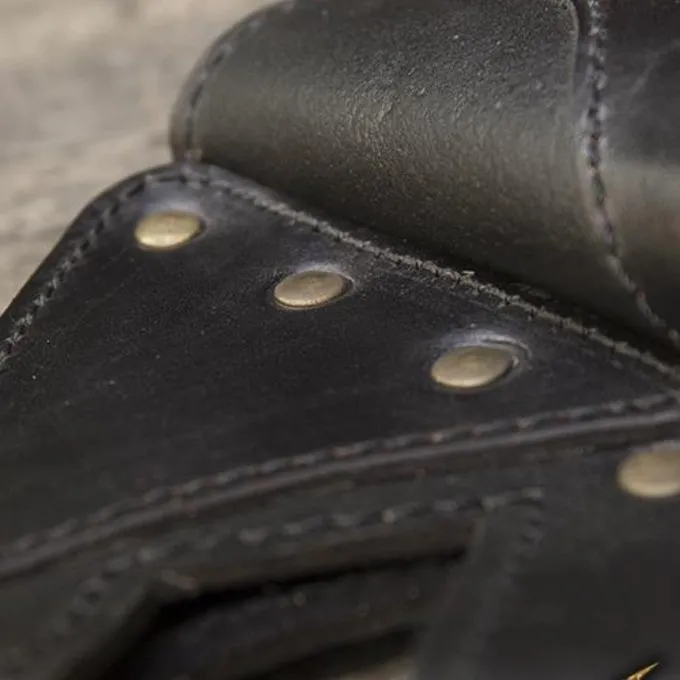 Deze hoge kwaliteit leren zwaardhouder is geschikt voor bijna alle LARP zwaarden. De max. klingbreedte is 6 cm. Je kunt deze houder aan je riem houden zodat je je zwaard snel kunt trekken tijdens LARP battles. Deze houder heeft mooie handgestikte details en een decoratief patroon.