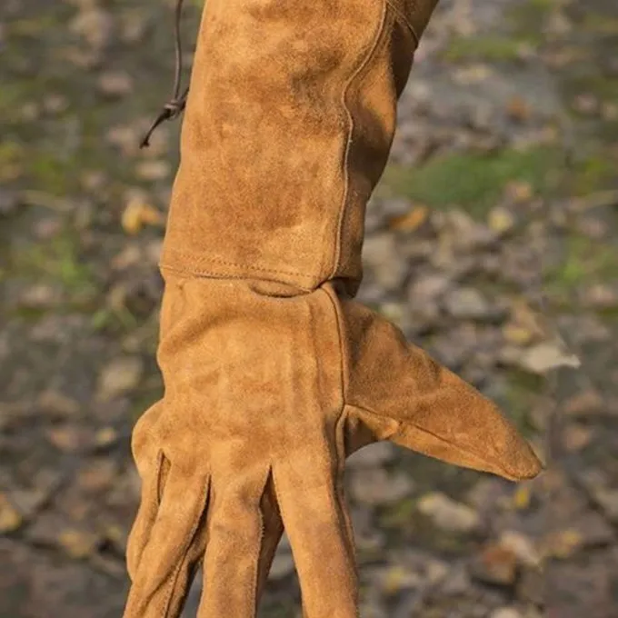 Handschoenen zoals deze zijn eeuwenlang gedragen tegen de kou, als bescherming tijdens zwaardvechten en bijvoorbeeld door de adel tijdens valkerij. Perfect voor vroegmiddeleeuwse, middeleeuws en Renaissance re-enactment en LARP en Cosplay van verschillende series.