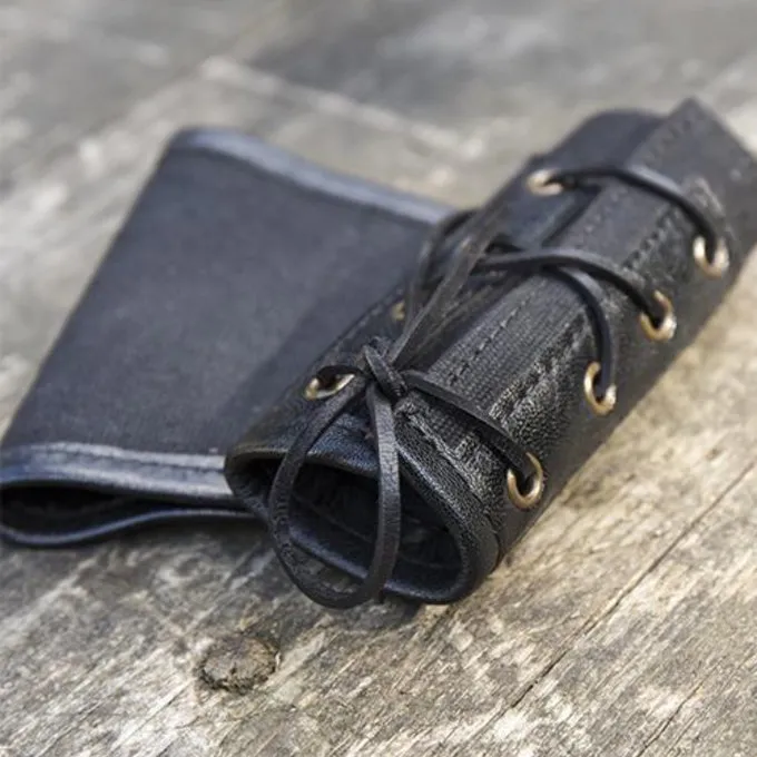 Deze LARP houder is geschikt voor LARP wapens met een klingbreedte tussen de 3 en 5 cm, bijvoorbeeld zwaarden, dolken en bijlen. Hij heeft een lus om hem aan een riem te hangen. De houder is geschikt voor een riembreedte tot 6 cm. Je kan de maat van de houder verstellen met de leren veters. Met deze houder heb je je LARP wapen snel bij de hand.