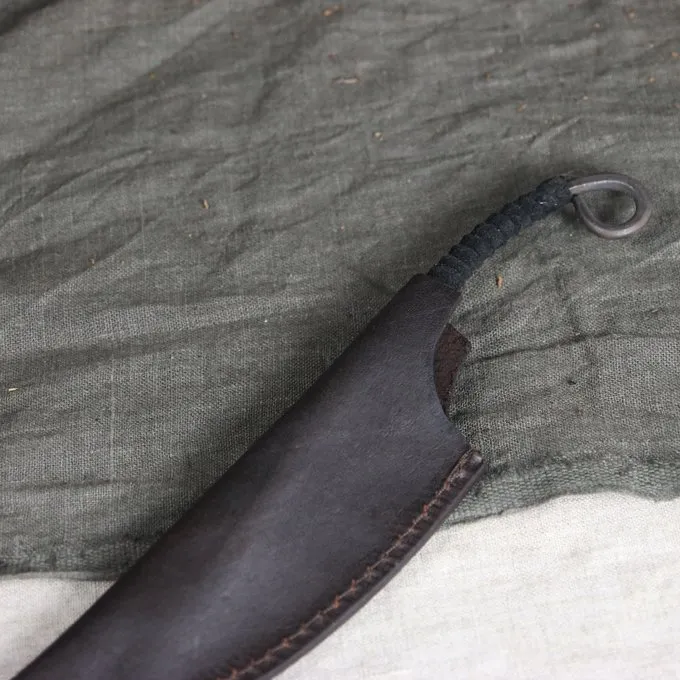Dit mes is gebaseerd op Keltische messen uit de La Tène tijd, 6de-4de eeuw v.Chr.. Hij is ideaal voor Keltische re-enactment, als broodmes in de keuken of voor druïde rituelen. Het mes is gemaakt van roestvrij staal. De grip is omwikkeld met een leren band. Geleverd inclusief schede.