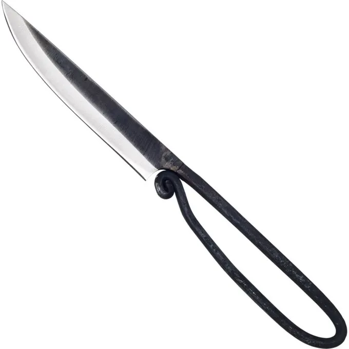 Messen zoals deze gebruikte men van de IJzertijd tot late middeleeuwen voor allerlei praktische doeleinden. Zoals het snijden van voedsel, leer, vacht, was, planten en dergelijke. Dit mes is handgesmeed van koolstofstaal en heeft een zeer authentiek ambachtelijk uiterlijk. Hierdoor is hij perfect voor historische reconstructies van bijvoorbeeld Kelten, Angelsaksen, Vikingen, Franken, Normandiërs, de internationale gotiek etc. Het mes wordt geleverd inclusief een bruine leren hoes waarin je hem kunt opbergen.