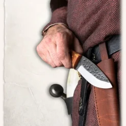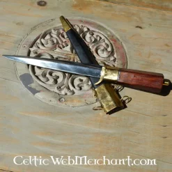 Dolken waren zeer populair tijdens de middeleeuwen. De dolk was een veelgebruikt wapen door ridders, boogschutters, piekeniers, voetsoldaten etc. Naast hun meest voorname wapen, zoals de boog, was de dolk belangrijk voor één-op-één gevechten en zelfverdediging. Men droeg de dolk aan de riem zodat hij snel getrokken kon worden bij noodsituaties. Deze dolk is gebaseerd op hoogmiddeleeuwse originelen. Hij heeft een bruine leren grip met houten kern, een volledige tangconstructie en een geklonken pommel. De wielpommel en rechte pareerstang zijn volledig in de stijl van de Hoge Middeleeuwen. De dolk wordt geleverd inclusief een zeer luxe schede gemaakt van hoge kwaliteit leer.