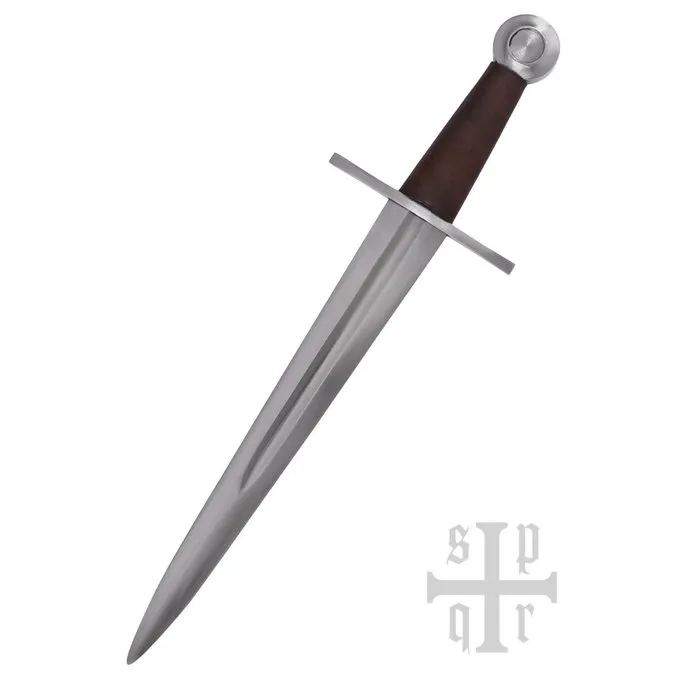 Dolken waren zeer populair tijdens de middeleeuwen. De dolk was een veelgebruikt wapen door ridders, boogschutters, piekeniers, voetsoldaten etc. Naast hun meest voorname wapen, zoals de boog, was de dolk belangrijk voor één-op-één gevechten en zelfverdediging. Men droeg de dolk aan de riem zodat hij snel getrokken kon worden bij noodsituaties. Deze dolk is gebaseerd op hoogmiddeleeuwse originelen. Hij heeft een bruine leren grip met houten kern, een volledige tangconstructie en een geklonken pommel. De wielpommel en rechte pareerstang zijn volledig in de stijl van de Hoge Middeleeuwen. De dolk wordt geleverd inclusief een zeer luxe schede gemaakt van hoge kwaliteit leer.